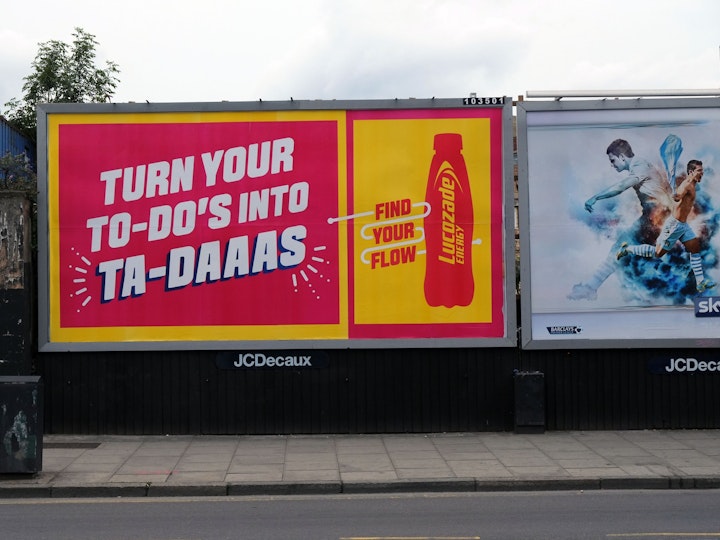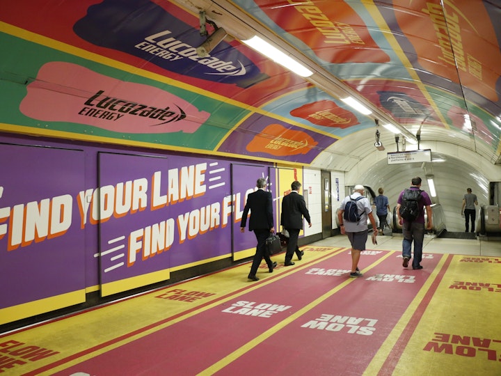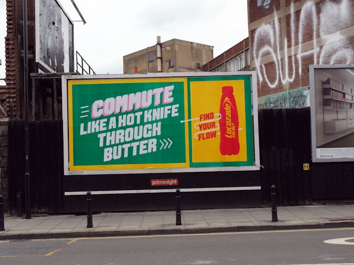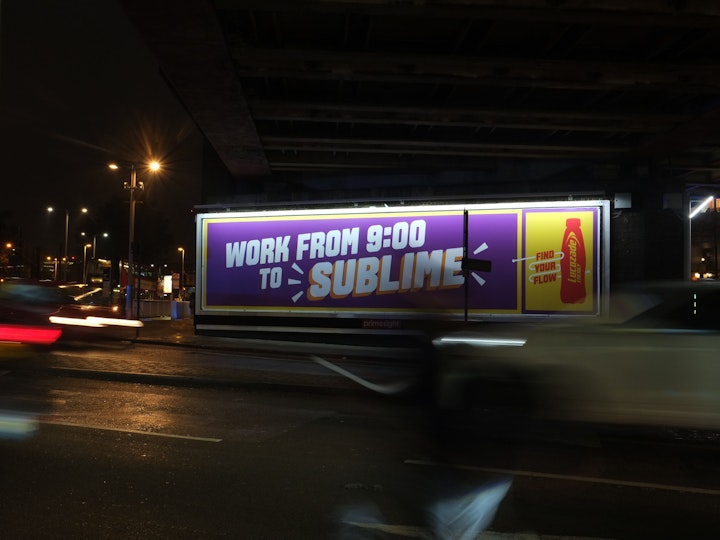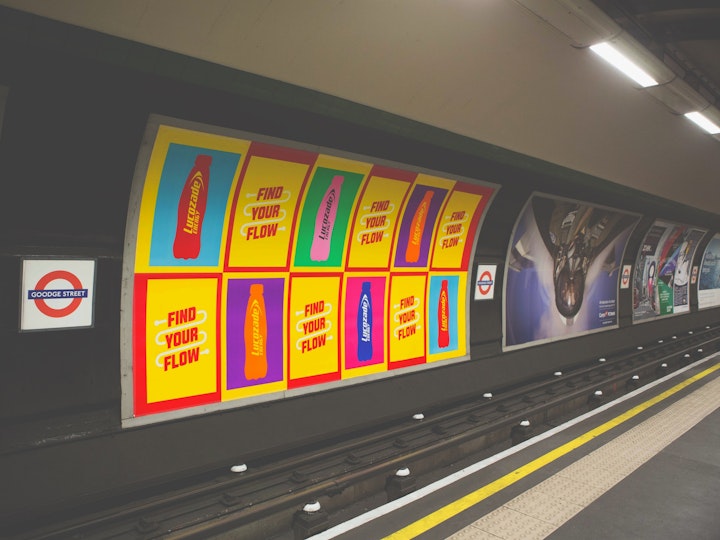 Lucozade Energy: They needed to shift the public mindset away from seeing it as a hangover cure to the drink of choice for busy people on the move who want to be on top form. We worked with some masters of print and used pantone colours to brighten up billboards, buses and train stations nationwide.